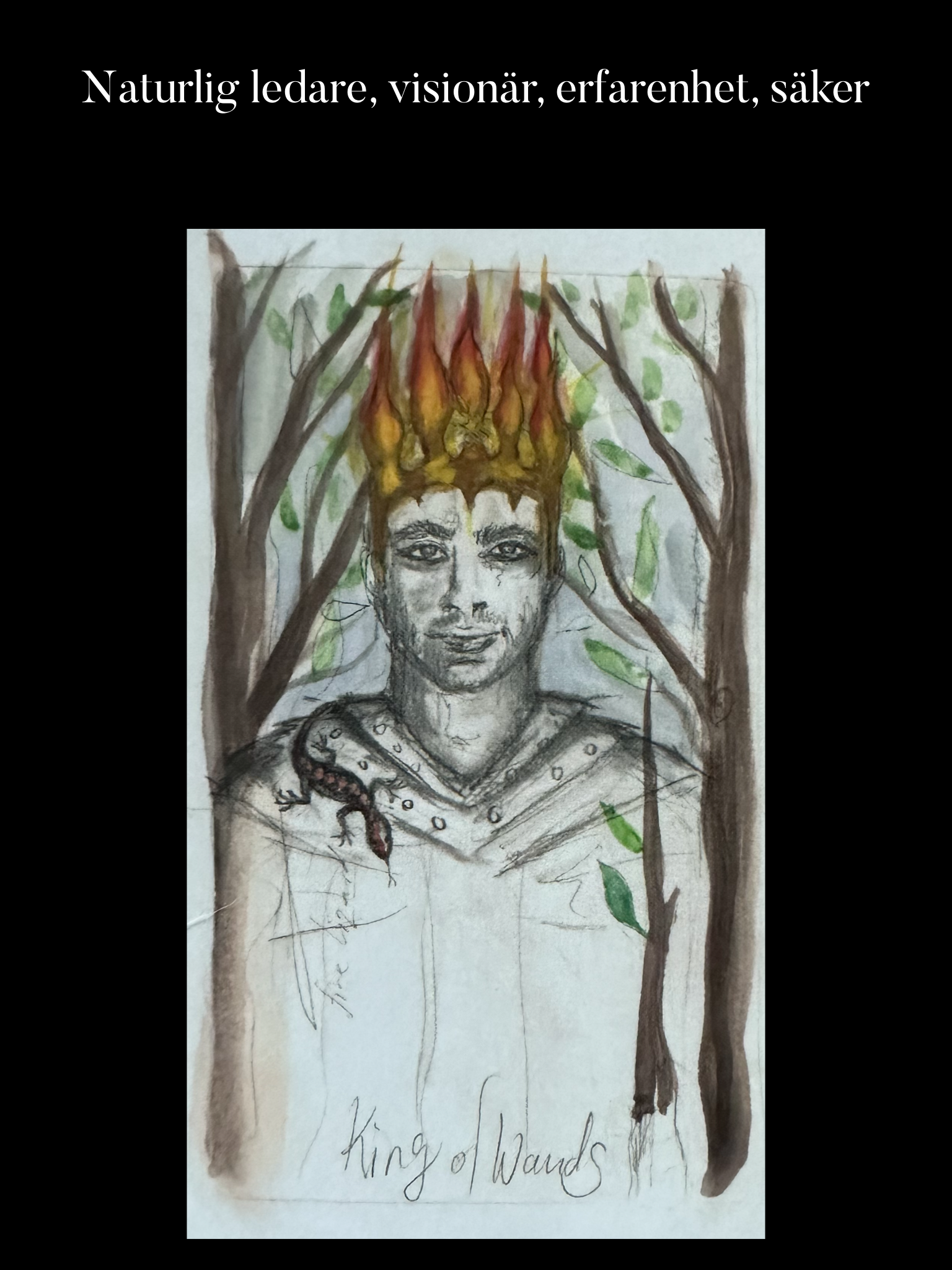 Kung i Stavar representerar aktiv eldenergi. Det innebär att Kungen kan hantera själva utförandet av det kreativa, någon som förverkligar sina egna eller andras idéer genom erfarenhet och inflytande. När kortet visar en positiv person i ditt liv kan det vara en uppmuntrande chef, en investerare, mentor eller en vän eller partner som är självsäker och karismatisk. Det här är någon som har kontroll och när kortet visar på någon med negativa drag kan det vara en kontrollerande och aggressiv despot.