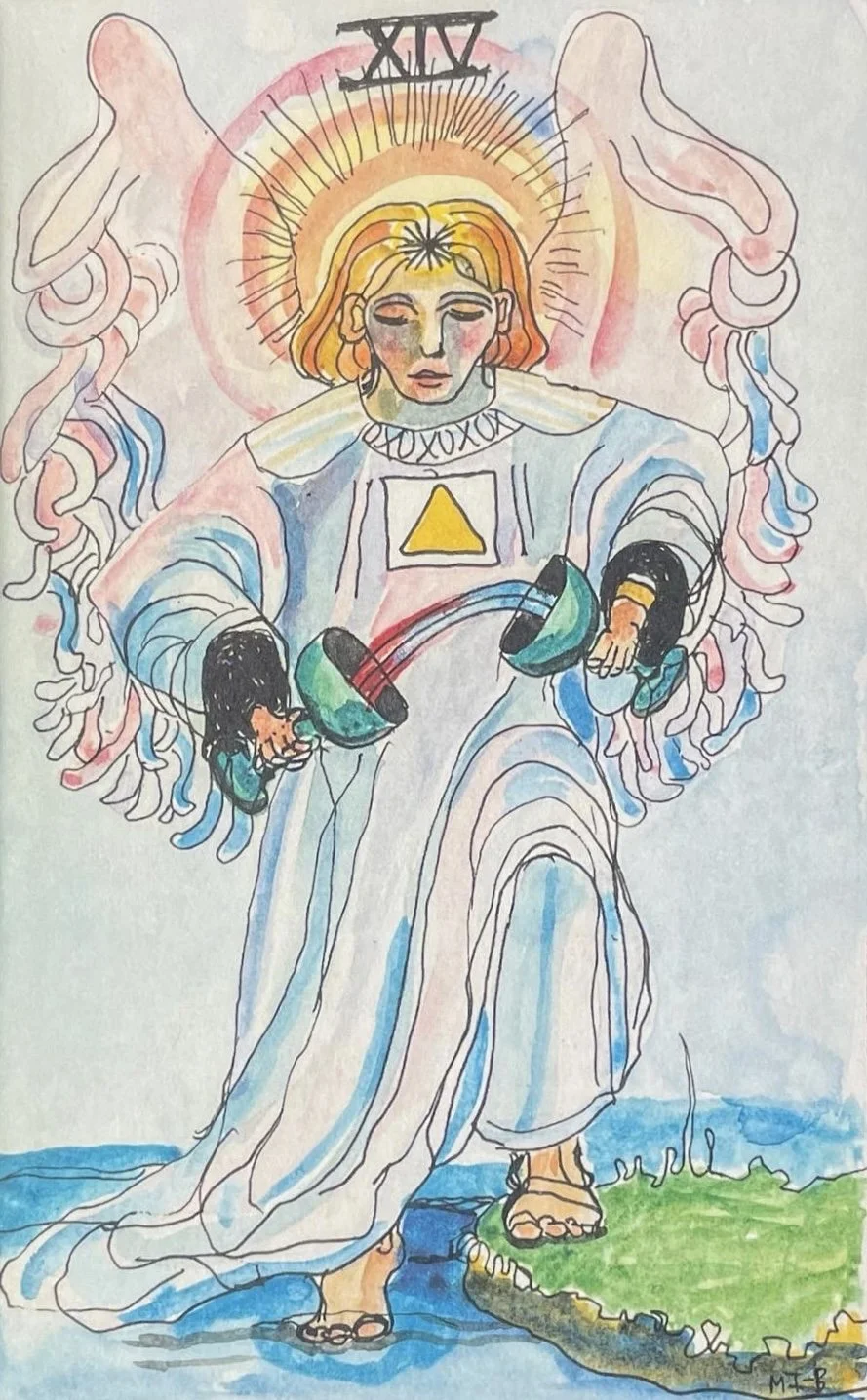 Temperance är ett healingkort som visar att du återfår balansen efter en turbulent tid. Du landar och får ny energi. Ljuset är på väg tillbaka. Stabilisera din energi och återställ ditt flöde genom andlig och fysisk träning. Allt är på väg att bli bättre.